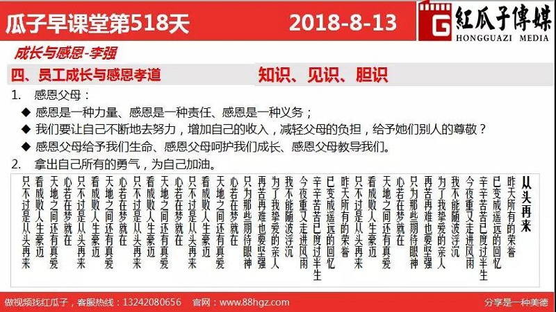 红瓜子传媒首页>相关资讯>最新动态>瓜瓜早课堂第518期-员工成长与感恩孝道4