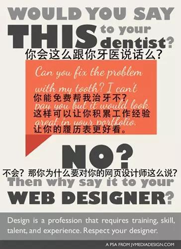设计师作为目前行业中偏弱势的群体,是需要一定的时间来成熟的,但我们的原则是:设计可以做公益,却不能做傻瓜。如果你热脸贴上冷屁股的去迎合客户,最后倒霉的终究是你自己。学会保护自己的利益,保护自己的版权,保护自己的行业位置,才能更快的脱离生存线的挣扎。