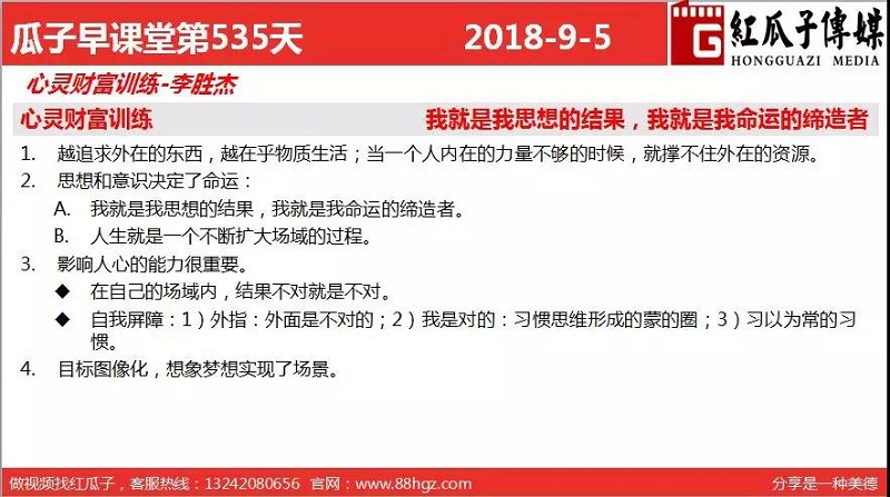红瓜子传媒首页>相关资讯>最新动态>瓜瓜早课堂第535期-心灵财富训练