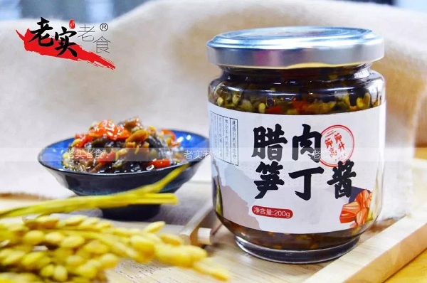 易酱腊肉笋丁,腊肉是春节的记忆,笋是冬春最新鲜的味道,如何让两者完美相结合?为了凑成这道最完美的“婚事”,经过多次的配对,才找到这对最佳组合—湘西农家腊肉和江西的板笋!采用传统工艺精制加工,手作与现代工艺相结合,食品安全有保障!口感丰富,回味悠长,乃居家必备品!腊肉的年味和竹笋的气节的完美结合,愿所有人日子都能“节节高升”!